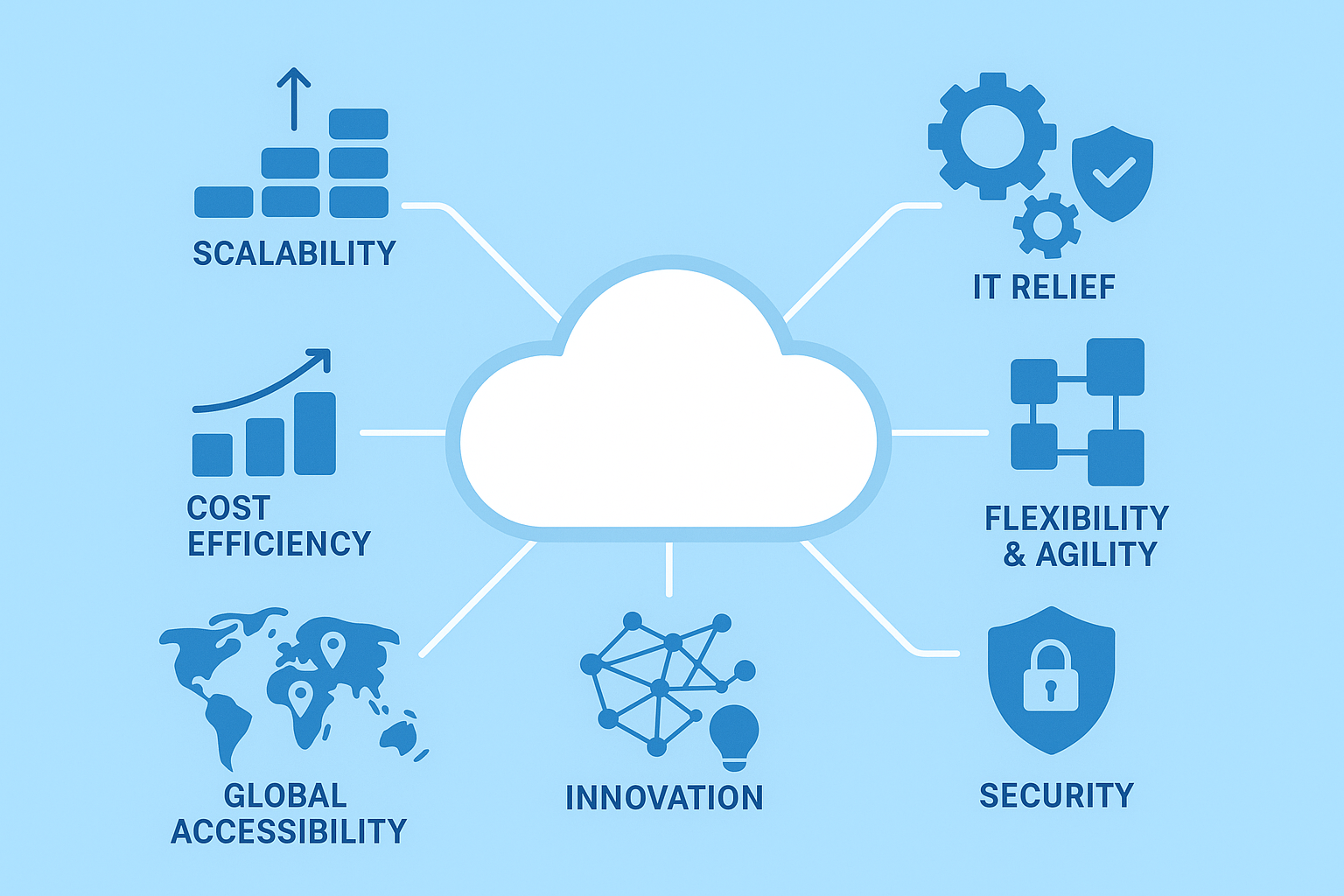 Cloud Computing bietet Unternehmen eine Vielzahl strategischer und operativer Vorteile, die weit über rein technische Aspekte hinausgehen. Ein zentraler Faktor ist die hohe Skalierbarkeit: Rechenleistung, Speicher und Services lassen sich flexibel an den aktuellen Bedarf anpassen. Wachsende Unternehmen oder saisonale Spitzen können so ohne langfristige Investitionen in Hardware abgefangen werden. Diese Elastizität senkt Kosten und schafft zugleich Raum für schnelle Innovationen.